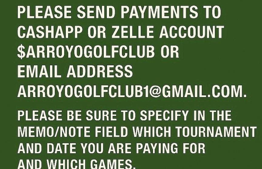 ARROYO GOLF CLUB MONTHLY TOURNAMENTS Pay Your 2025 Club Membership Fees Below: |