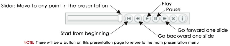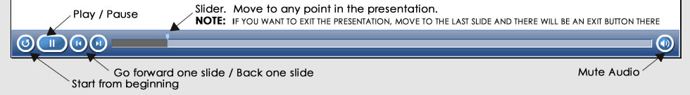 | For the 2 presentations above, you can completely control the playback by using the slide controls as shown in the image below. You can find this slide control at the bottom of the presentation page. ![]() |